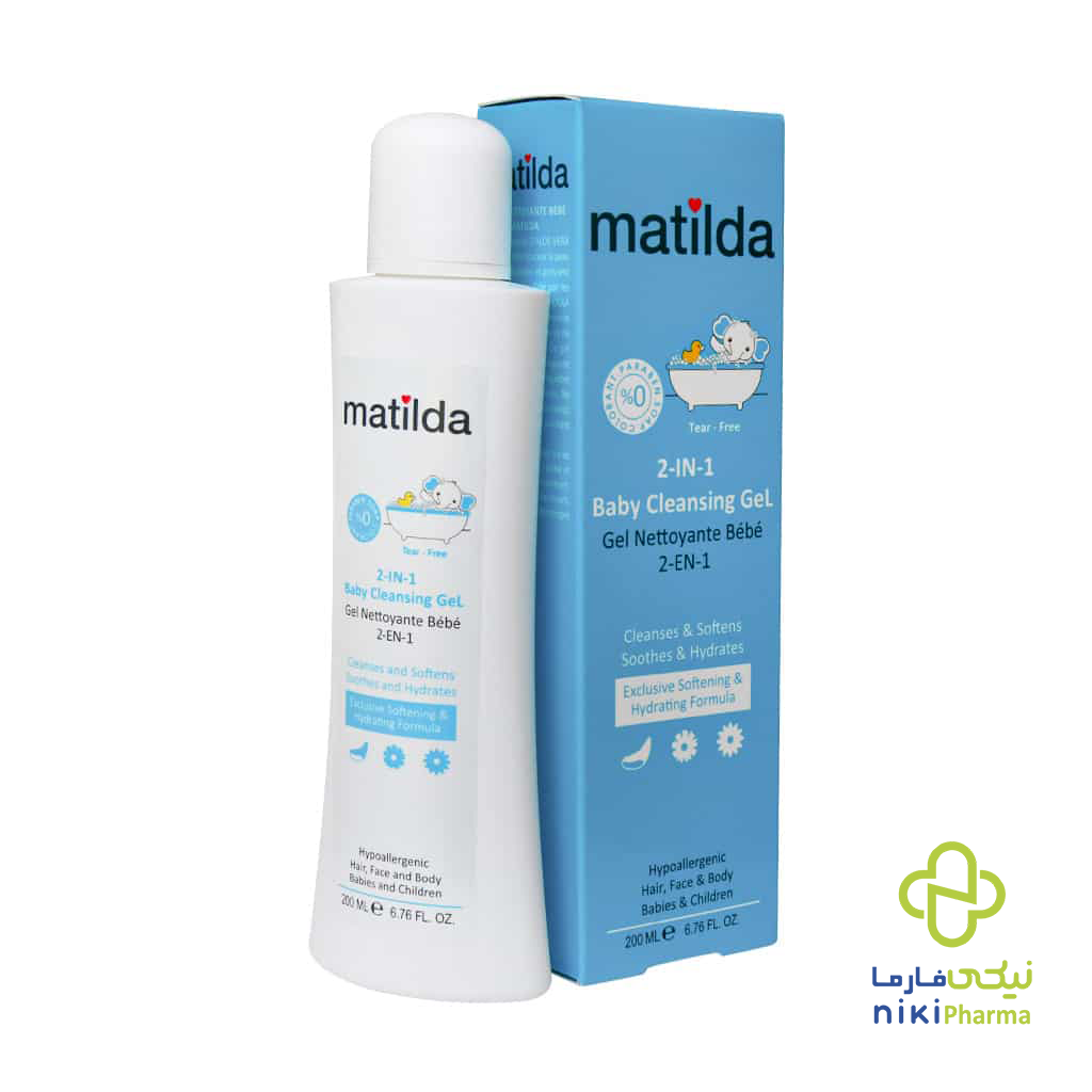 ژل شستشوی کودک ۲ در ۱ ۲۰۰ میل ماتیلدا، مناسب برای شستشوی بدن و موهای کودک، حفظ رطوبت و جلوگیری از خشکی پوست حساس کودکان.